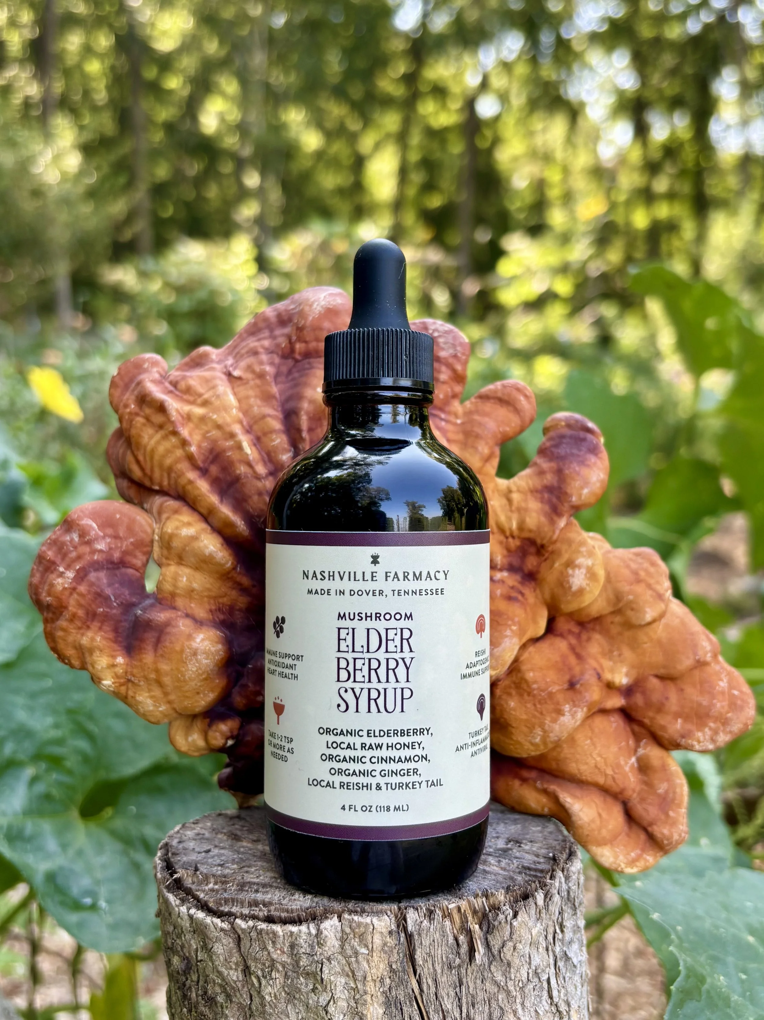 Just in time for back-to-school immune support! Our delicious Mushroom Elderberry Syrup is made with local reishi and turkey tail mushrooms, organic elderberries, ginger & cinnamon and local raw wildflower honey.